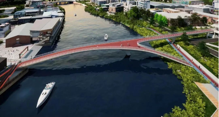 该桥梁的开放,可为市民提供一个兼具步行、亲江观景、休闲运动的全新景观空间,市民可步行穿越各潮流项目,打卡沿途美景,沉浸享受city walk。
