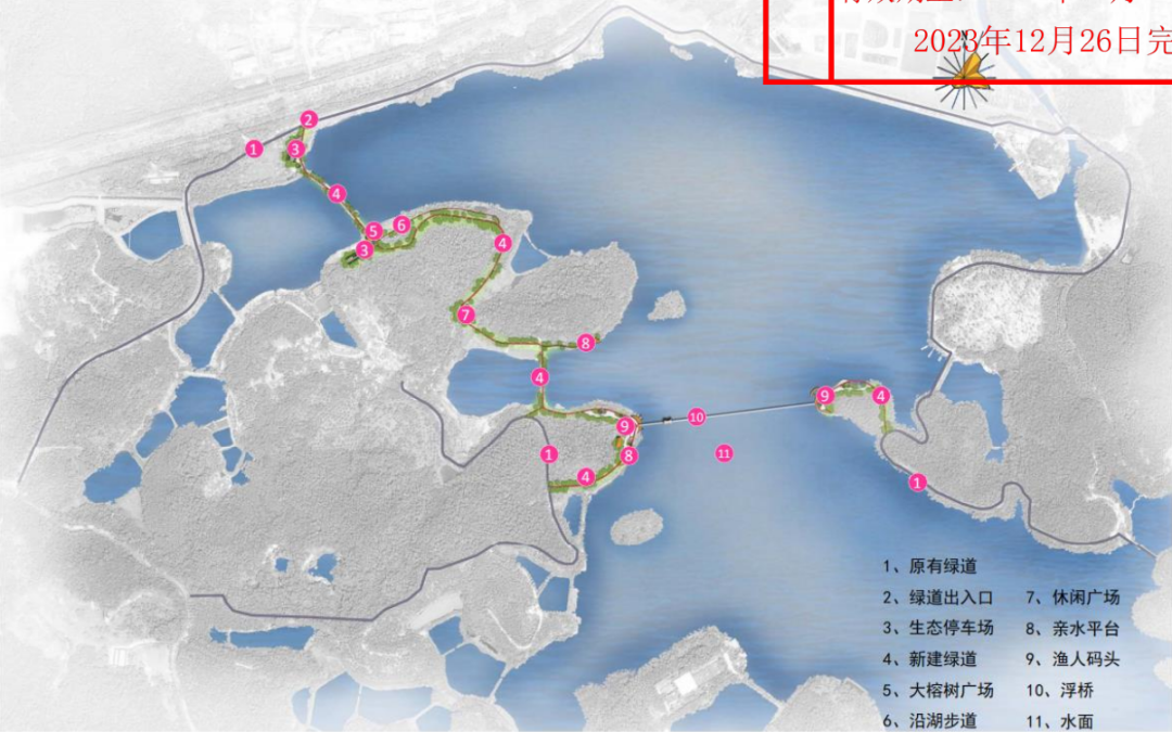目前同沙生态公园内部交通组织功能尚不完善,各个景点的连通性较差, 游览和锻炼路线单一,横跨同沙水库只能通过环水库道路实现,极大地降低了市民游览及锻炼体验。通过本浮桥项目建设,从水库中部搭建跨水通道,将大大改善公园内部交通。