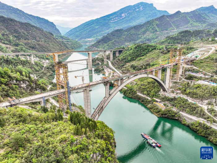 4月8日晚,由渝黔铁路有限责任公司代建、中铁大桥局承建的渝湘高铁黄草乌江双线大桥重庆岸引桥上部结构顺利实现合龙,目前该桥完成建设进度90%,进入全桥合龙前的最后冲刺阶段。