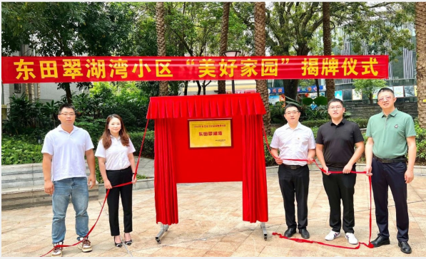 近日,东田翠湖湾小区“美好家园”揭牌仪式举行。常平镇房管所、板石村各住宅小区党支部负责人,常平镇内部分住宅小区物业服务企业有关负责人参加活动。据悉,2023年东莞市“加强物业管理 共建美好家园”评选活动结果日前出炉,常平东田翠湖湾获评东莞市2023年度“美好家园”。