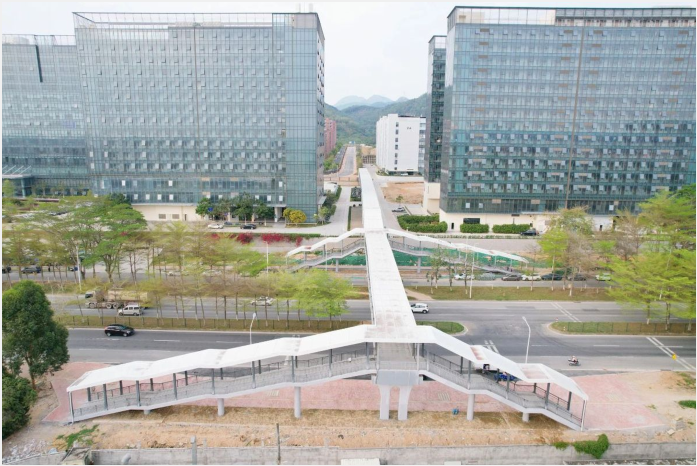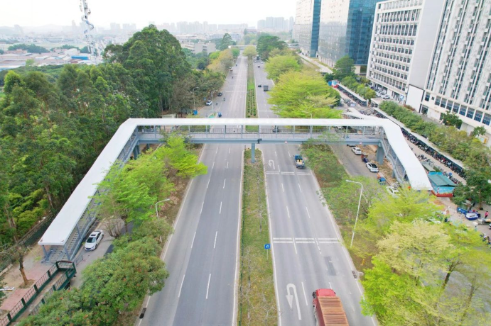 清溪镇北环路是横穿清溪镇东西向的一条交通主干道,周边分布着立讯精密、奋达科技、欧朋达、黄金谷、海德双语学校等知名企业和学校,是清溪镇重要的现代科技产业发展带。近年来,伴随着周边产业的快速发展,该区域车流量大、车速快,交通安全隐患日益显现。为保障群众人身安全、带动周边经济发展,清溪镇相继在规划一号路与北环路交接路口处以及欧朋达、奋达地块之间与北环路交接路口处启动了北环路1号、2号人行天桥及其延长线的建设工作。