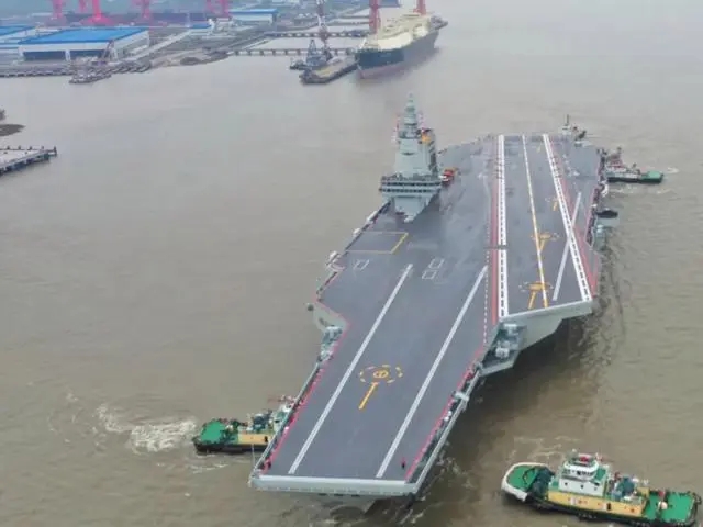 据中国官方媒体5月1日消息,当天8时许,中国第三艘航空母舰福建舰从上海江南造船厂码头解缆启航,赴相关海域开展首次航行试验。