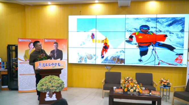 人民日报客户端知名主持人许大策主持沙龙,并带来“阅览群峰 无尽攀登”的微分享。他以《无尽攀登》一书为引,讲述了43年里五次冲击珠穆朗玛峰、69岁成功无腿登顶珠峰中国第一人——夏伯渝的故事。
