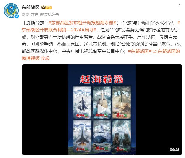 “台独”与台海和平水火不容。东部战区开展“联合利剑-2024A”演习,是对“台独”分裂势力谋“独”行径的有力惩戒,对外部势力干涉挑衅的严重警告。战区官兵长缨在手、严阵以待,锻铸青云箭,习研杀手锏,热血报家国,逆风亮长剑。剑指“台独”的杀“独”神器已就位。(东部战区融媒体中心、中央广播电视总台军事节目中心)