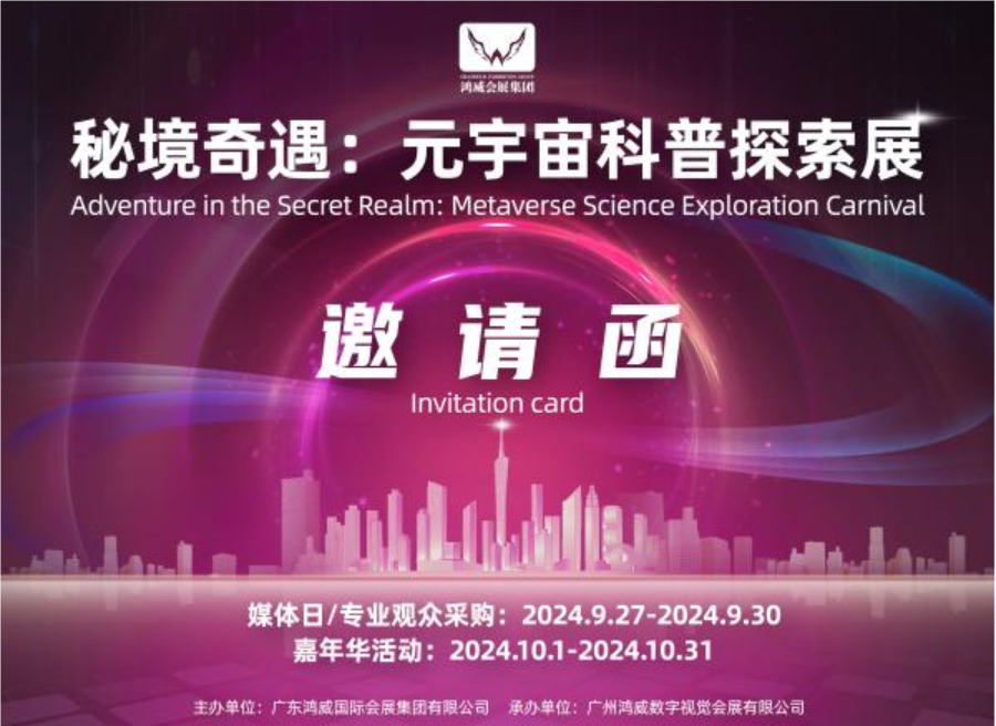 2024中山游博会同期举办“秘境奇遇:元宇宙科普探索展”“鸿威动漫游戏IP授权展”,游乐+文旅+元宇宙+动漫游戏+IP授权,解锁多元场景、多元空间,玩转娱乐新消费,真正实现资源聚集、优势互补、能级跃升、深度融合: