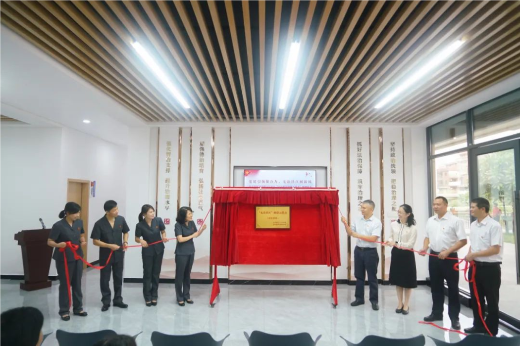 东莞第一法院党组书记、机关党委书记、院长林辉芳,万江街道党工委副书记陈伟楚及南城法庭、万江司法分局、万江社区党组织负责人共同为万江社区“无讼社区”创建示范点揭牌。