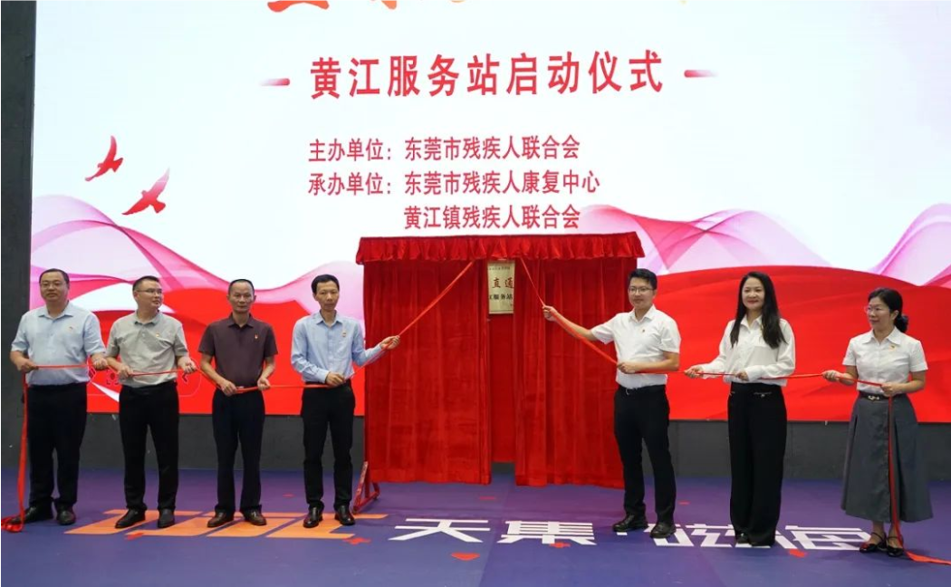 启动仪式上,七位领导共同为黄江站启动进行揭牌,并点亮屏幕,“童康直通车”东莞市残疾儿童少年家庭培训及服务项目黄江服务站正式启动。
