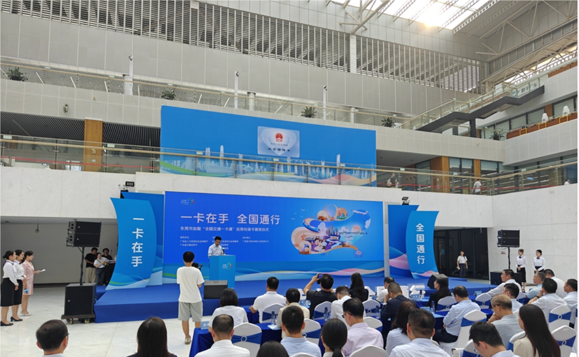 仪式上,东莞就社保卡加载全国交通一卡通应用进行介绍。据悉,推进社保卡“交通一卡通”应用是贯彻落实习近平总书记关于探索以社会保障卡为载体建立居民服务“一卡通”,在交通出行、旅游观光、文化体验等方面率先实现“同城待遇”重要指示精神的具体行动。为落实上级关于在社保卡上加载全国交通一卡通应用的要求,满足群众跨省跨市一卡通行需求,东莞市在省人社厅、省交通厅大力支持和指导下,高位统筹推动社保卡“交通一卡通”应用工作,压实部门责任,强化建设合力。