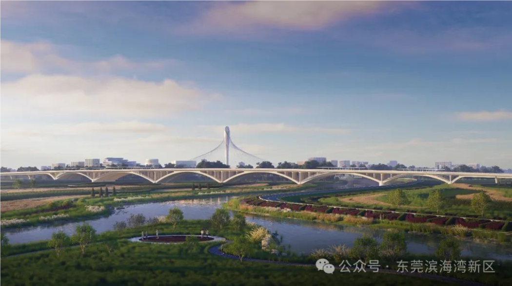 东莞滨海湾新区将新建一座横跨磨碟河的大桥——东湾大桥,总投资约6.8亿元,计划于年内开工建设,预计2027年完工。大桥全长约1172米,起于交椅湾的福海路南延线,终于沙角半岛的东环一路,规划为双向八车道,设计时速60km/h。东湾大桥不仅是重要的交通通道,也是未来磨碟河湿地公园的重要景观桥,将采用上承式拱桥设计,并创新利用拱圈空间形成上下桥通道,为市民带来独特、新奇的体验。