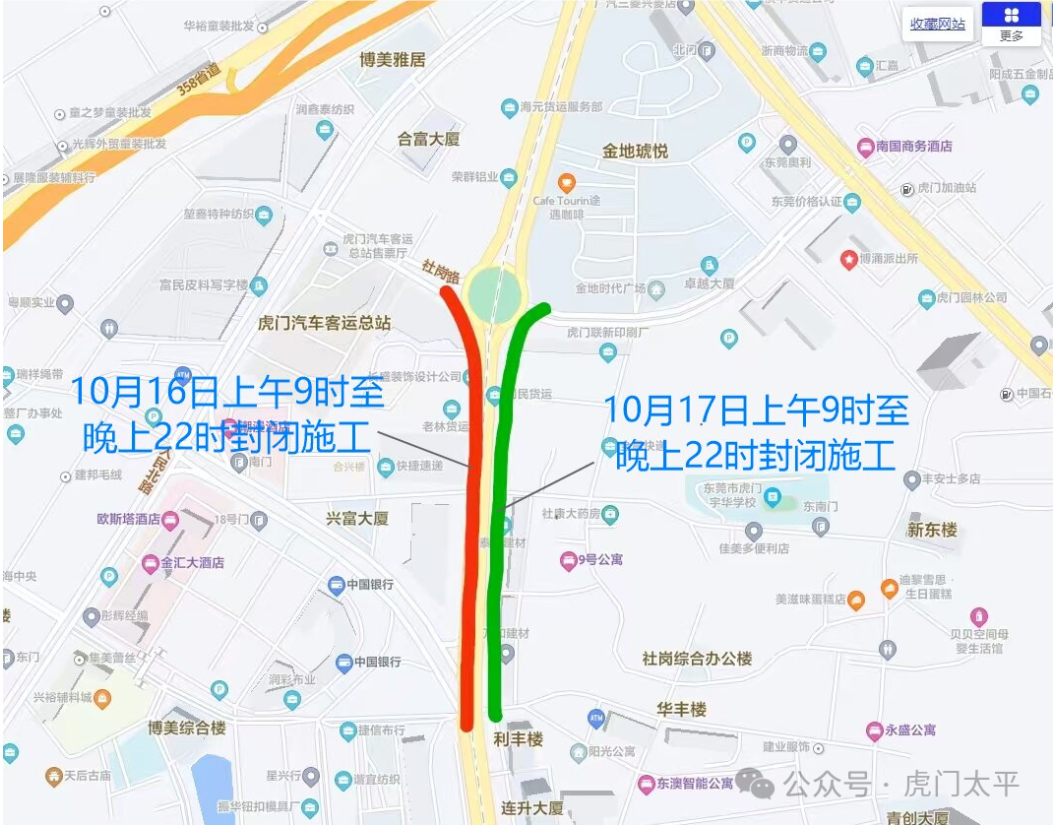 虎门镇社岗路(人民路至省道及连升北路至转盘段)计划进行道路升级改造工程,以提升道路通行能力和安全性。本次施工将分时段封闭道路,进行沥青摊铺工作。
