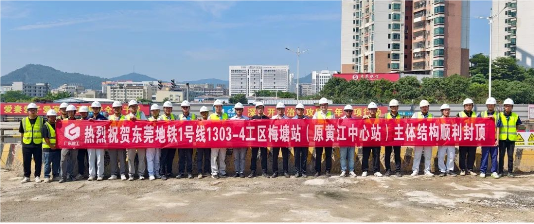 东莞轨道交通1号线一期工程1303-4工区项目梅塘站(原黄江中心站)主体结构顺利封顶,标志着全线车站全部封顶,为线路早日开通打下最后一块坚实的基础。