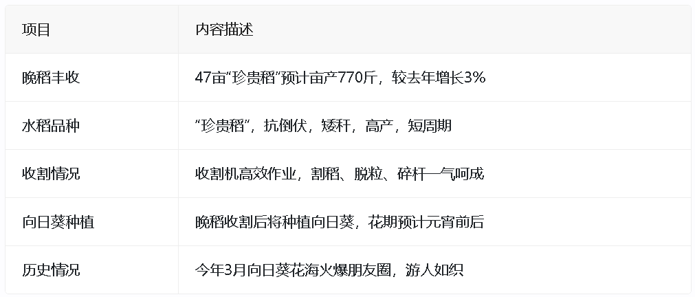 晚稻收割后将种植向日葵,花期预计在元宵前后