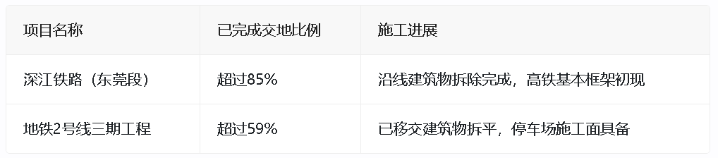 表格:东莞重点交通项目土地整备进展,以上数据及内容仅供参考,具体以官方发布为准。