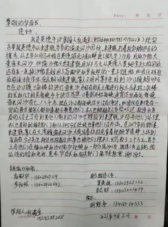 涉黑采矿屡禁不止的问题从“2020年开始,朱某聪就曾经组织采沙船进行非法采沙,村民多年来多次投诉都无结果,村民遭到恐吓。当地黑恶势力头目:1号朱建聪(外号,胖聪,崩聪),2号林金科,(外号科长)3号蓝科武(外号胖子)4号林金威(威哥)5号张维(烂子维)6号朱建明(船长),当地盘踞多年来村民投诉无门”。