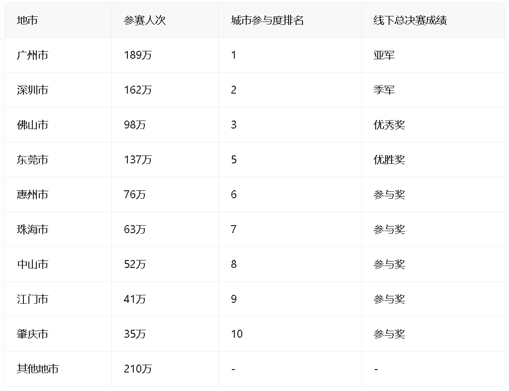 第五届广东省全民科学素质大赛成绩汇总表,注:以上数据仅供参考,具体成绩以官方发布为准。