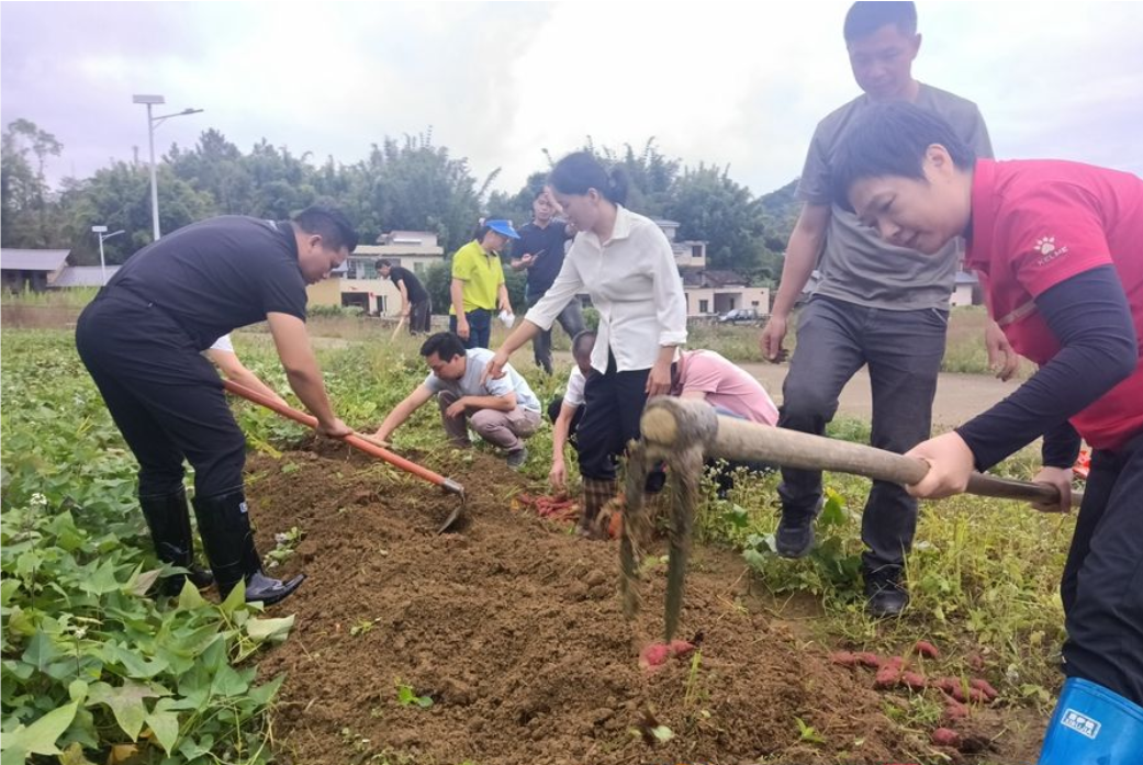 当天下午,帮扶团队来到东城-新丰退役军人就业创业种植基地,听取了基地负责人对基地创立以来的运营情况介绍。在基地现场,帮扶团队和基地工作人员齐心协力采收番薯。该种植基地为退役军人提供了一个展示自身能力、实现社会价值的重要平台,通过农业种植项目,不仅让退役军人能够积极参与到生产劳动中,还为他们创造了就业机会,助力其融入社会、实现自我价值。