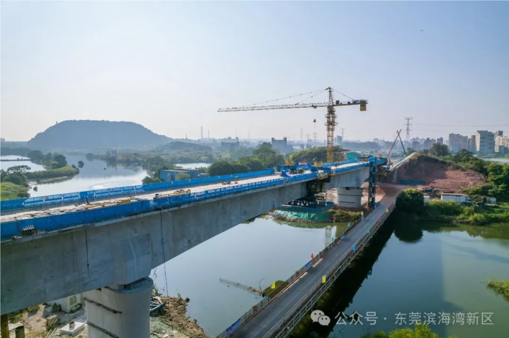 近日,深江铁路东莞段建设迎来重大进展,全线首个采用悬臂智慧造桥机施工的连续梁在磨碟河上方顺利合龙,标志着项目向沙角半岛方向的延伸建设按下“加速键”。此次合龙的连续梁是上跨沿江高速公路特大桥的关键组成部分,其成功合龙为深江铁路的全面建设奠定了坚实基础。跨磨碟河连续梁全长约221米,梁面宽约12米,采用单箱单室直腹板、变高度、变截面结构设计。此次施工采用了先进的悬臂智慧造桥机,与传统挂篮悬壁浇筑施工相比,综合工效提升了20%以上。这一技术的应用不仅提高了施工效率,还确保了工程质量和安全,为类似工程提供了宝贵经验。