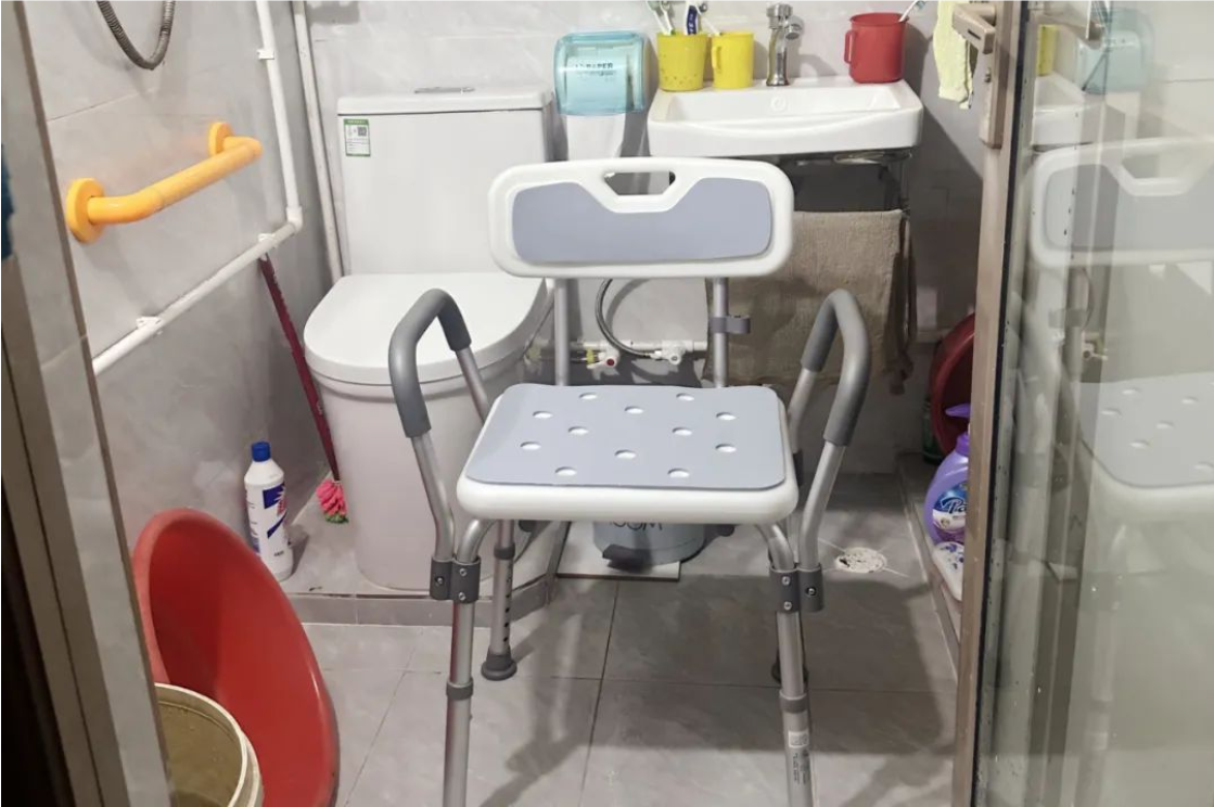 - 改造内容:卫生间蹲便器改坐便器、重新铺贴墙面地面瓷砖、更换卫生间门、增加沐浴椅、楼道增设扶手等