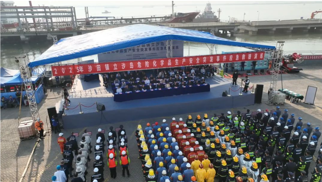 1月8日,沙田镇在立沙岛精细化工园区举行了一场规模宏大的2025年危险化学品生产安全突发事件应急救援演练。此次演练旨在提升应对危险化学品突发事件的组织指挥、快速响应及处置能力,检验各级预案衔接的协调性和科学性。东莞市应急管理局有关领导、沙田镇部分班子成员以及多个相关部门的负责人参加了此次演练。