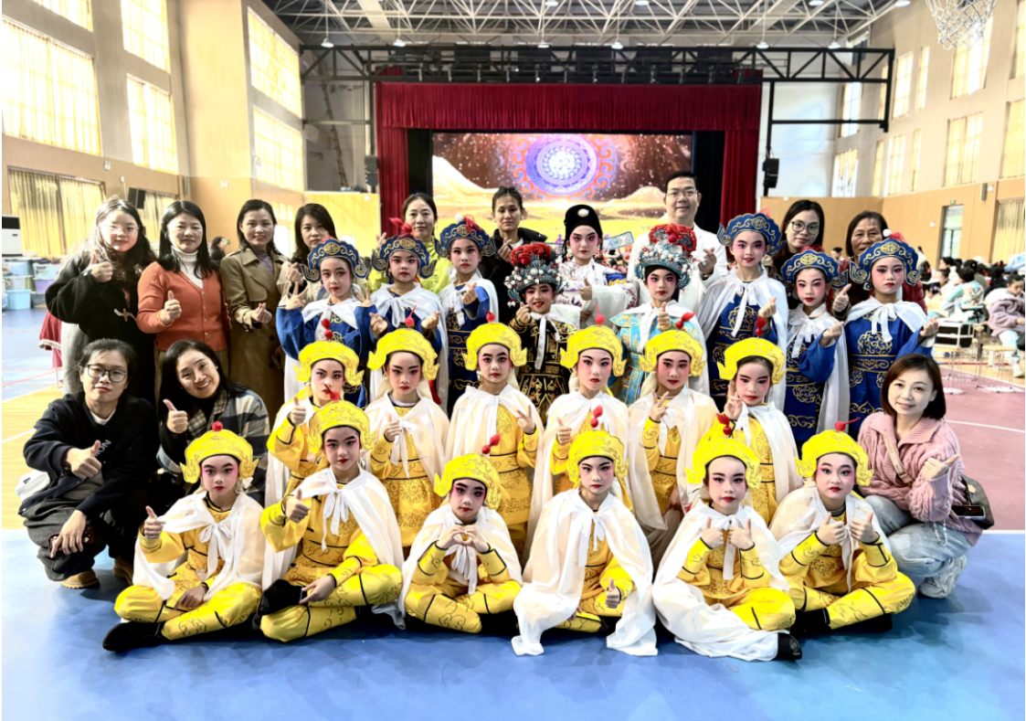 万江第五小学通过成立“红豆乐”粤剧社团,实施公益教学,招收一至六年级学生进行分层培训。课程涵盖基本功、唱功、形体及剧目训练,全面激发孩子们对粤剧的兴趣。学校还集思广益,编制了《红豆乐》校本教材,并建设粤剧知识角及粤剧长廊,为师生提供沉浸式的学习和体验环境。