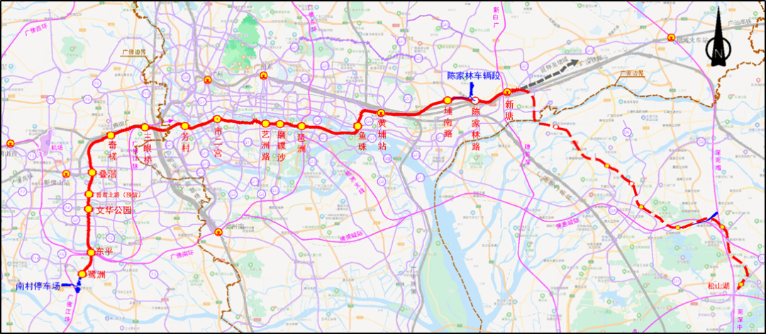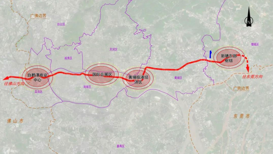 最新公示显示,佛山段7站、广州段10站的配置较原方案各减1站和3站。广州段消失的怡乐路、新洲、坭紫三站均为战略换乘节点——怡乐路站扼守滨江中轴,原计划与地铁10号线十字换乘;新洲站作为琶洲东区超级总部核心枢纽,本可实现三线交汇;坭紫站则是穗莞边界的重要接驳点。佛山段则取消非换乘的澜石二路站,东莞段减少蕉利站。