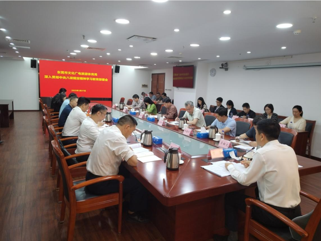 2025年3月27日,东莞市文化广电旅游体育局召开中央八项规定精神学习教育动员部署会,全面启动为期三个月的作风建设专项行动。会议刀刃向内直面沉疴顽疾,以"四维攻坚"战术体系推进全面从严治党向纵深发展。