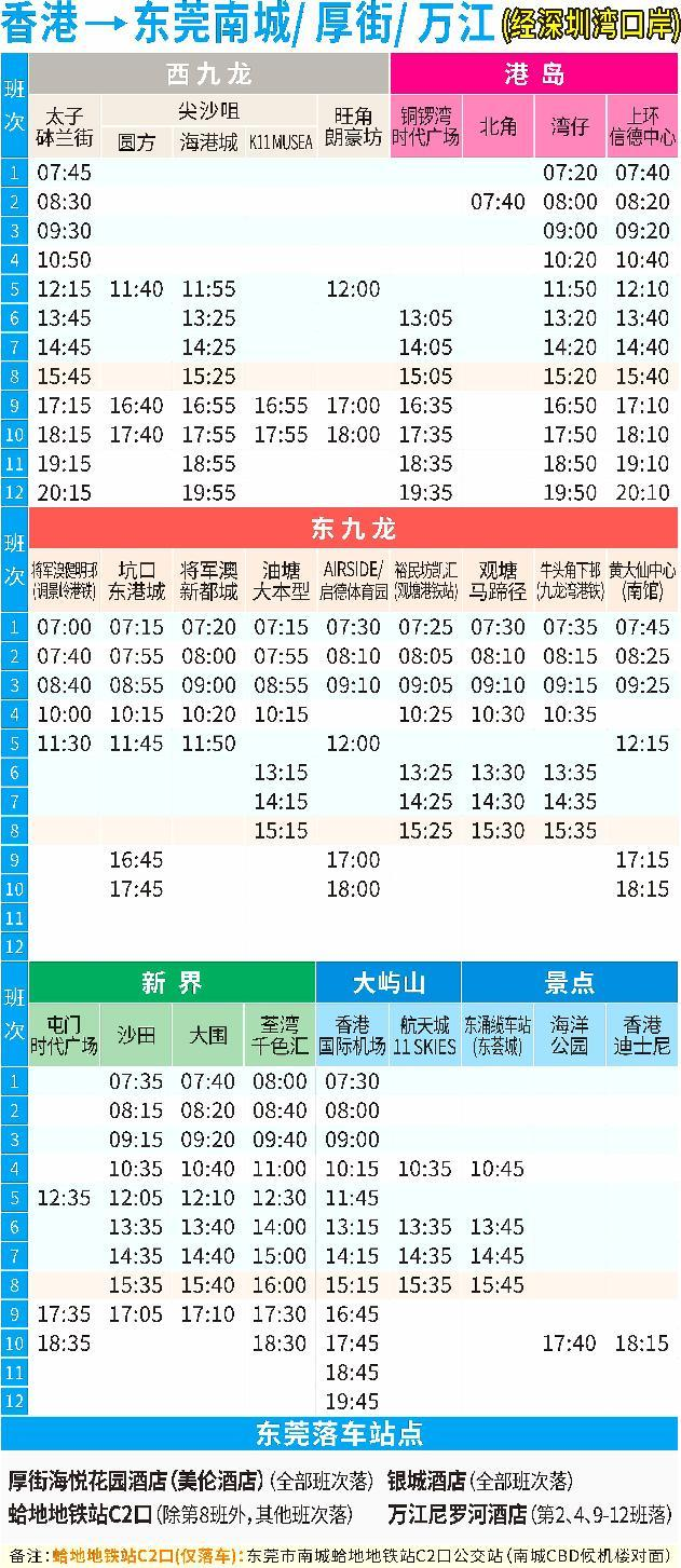 环岛中港通4月8日投运的跨境直巴专线,以深圳湾口岸为支点构建起"立体化接驳网络"。东莞万江始发站串联银城酒店、厚街海悦等四大核心枢纽,香港端覆盖尖沙咀至迪士尼等20余个战略节点。12班次/日高频运营打破传统跨境交通"潮汐班次"局限,2小时直达时效较原有线路压缩40%。首月9.9元体验价与正价85元形成的梯度定价,既培育市场又暗含价格锚定策略。