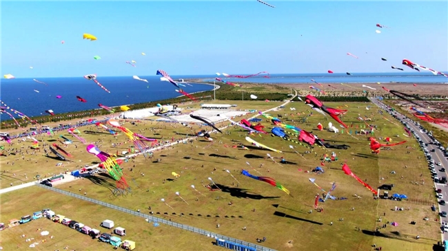 据介绍,该放飞场自2016年启用以来,已连续9年承办潍坊国际风筝会,成为全球风筝爱好者的“朝圣之地”。场地占地近千亩,拥有高标准草坪、观众坐区、休息室、会议室等配套设施,兼具赛事举办与休闲旅游功能。其紧邻渤海湾的独特区位,凭借稳定强劲的风力、开阔的沙滩绿地与海天相映的生态景观,为风筝放飞提供了“天然竞技场”,也成为市民与游客亲近自然、体验风筝魅力的理想场所。