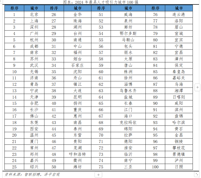 最新发布的《中国城市人才吸引力排名》报告揭示,全国人才流动呈现持续分化态势。数据显示,2024年跨城求职者占比达四成,其中男性比例(61%)与高学历群体(本科以上54%)成为流动主力军,IT互联网、房地产、制造业三大领域贡献超半数流动人才。