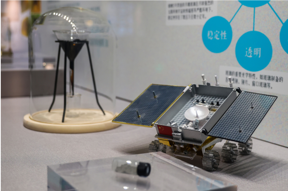"这些月壤玻璃样本的抗老化机理,正在改写人类对宇宙材料的认知。"中国科学院院士汪卫华在揭幕式上表示。展区内,从实验室走出的非晶态材料研究成果与古代玻璃器皿展开跨时空对话——嫦娥五号月壤玻璃的太空风化研究揭示着星际探索新方向,而显微镜、棱镜等现代科学仪器的玻璃元件,则延续着古代玻璃作为文明载体的使命。