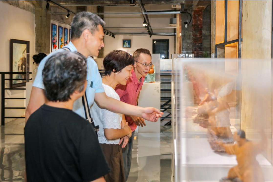 展览现场人气火爆,市民穿梭于传统与现代交织的艺术长廊。黄志伟八十余件代表作串联起四十载艺术求索之路,其独创的"线塑"绝技尤其引人驻足。弟子们的创新作品突破传统边界,茶器《青岚》将水墨意境注入陶土,陶塑《破茧》以当代装置语言解构传统题材,展现新生代艺术力量。