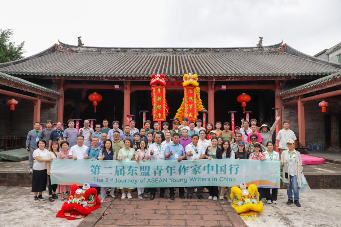 樟木头镇"中国作家第一村"以客家麒麟舞迎接远方来客。柬埔寨作家陈秀吟穿行于青砖黛瓦的作家工作室集群,在丁燕书房品茶时感慨:"这就是创作乌托邦!静谧古雅中激荡思想,柬埔寨急需复制此模式。"驻村作家陈崇正、郑晓琼打开家门,与东盟同行签赠诗集、挥毫泼墨。院落中即兴诗歌朗诵声穿透百年榕树气根,马来西亚诗人提笔写下"文字无疆"时,毛笔尖的墨汁正滴落宣纸,洇开一团东方意象。