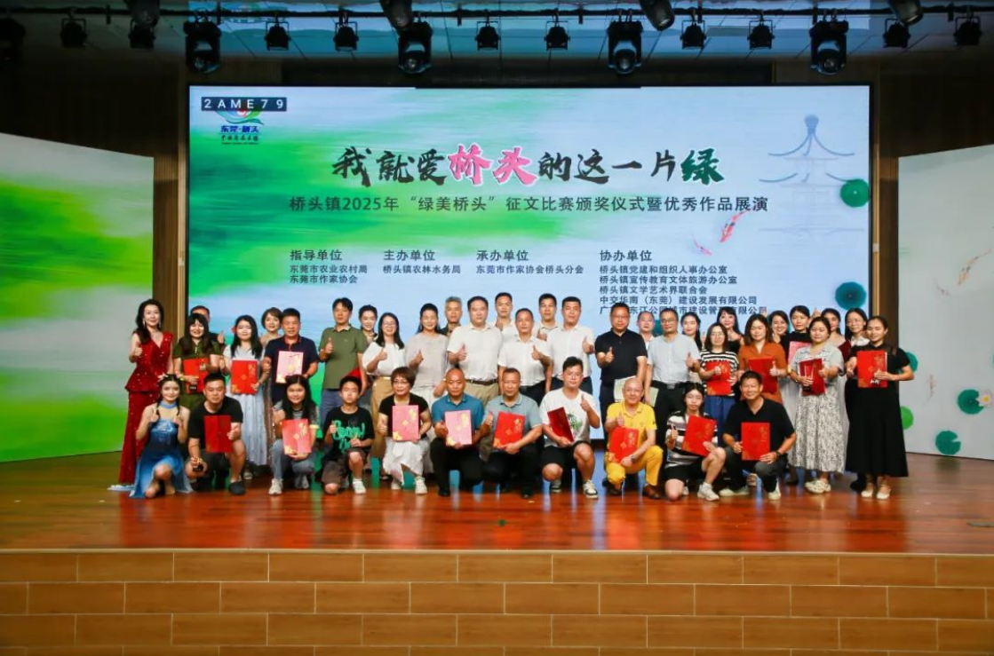 荷香漫溢的夏夜,桥头镇文化中心剧场内光影流转。当《桥头情》的旋律响起,舞者水袖轻扬勾勒出东江碧波,观众席间白发老者轻拍膝盖跟唱“莲湖柳浪连天际”——这场集结千余作品的“绿美桥头”征文颁奖礼,在7月6日晚化作沉浸式生态诗会。东莞朗诵协会会员陈帆手持泛黄纸页走上舞台,聚光灯下《在桥头读荷花》的诗行随抑扬顿挫的诵读苏醒:“当月光浸透第三片荷瓣/镇志第186页的墨香开始返青…”台下,散文获奖者李淑娟眼角泛光,她的《古巷绿痕》中那株爬满百年碉楼的薜荔,此刻正随声波在剧场穹顶生长。