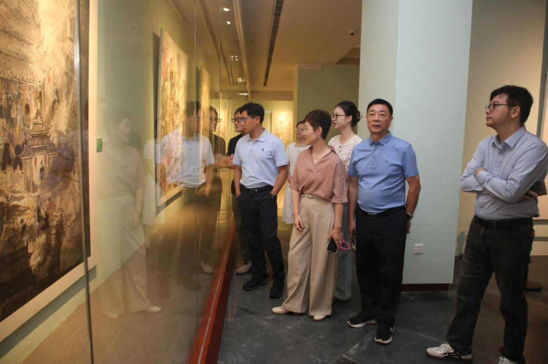 展厅转角处,八旬老翁驻足《石鼓书院图》前低吟:"楹联'鸢飞鱼跃'正是我幼时描红的范本。"衡阳美术家协会主席李少全向东莞观众揭秘:画中江心岛上的楼阁并非写实,而是融合了七代书院建筑精髓的意象创作。相邻展墙的《湘江渔火》组画前,策展人特意调暗灯光,宣纸上的夜泊渔船在幽光中仿佛随波轻晃,引得摄影爱好者连按快门。