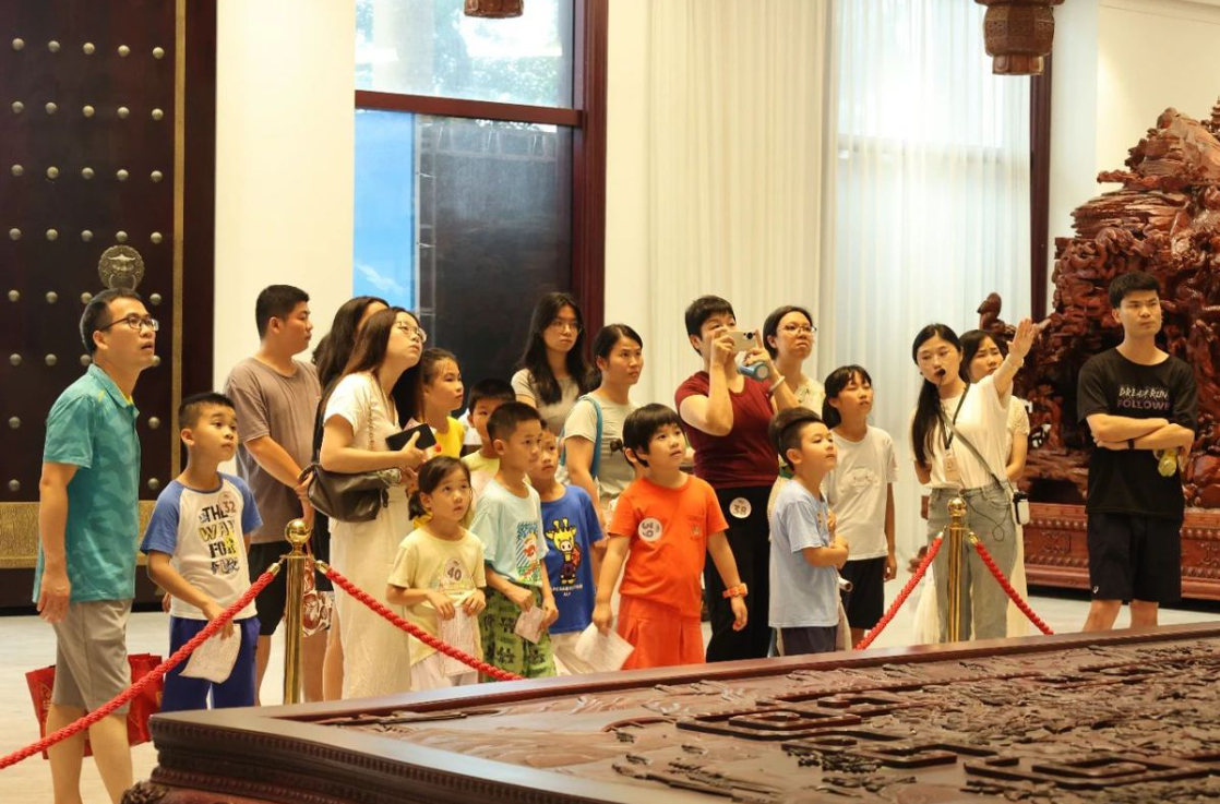 在石碣碣镇拉开帷幕的湾区周末IN东莞系列活动,于8月2日热闹开启,以“紫檀探秘”自然系周末撒欢计划为核心,在国家二级博物馆东莞市福木源紫檀博物馆内盛大举行。45组亲子家庭积极参与,他们在紫檀香气与文化氛围的交织中,度过了一段充满意义的周末时光。活动伊始,这些家庭共同参与了文明卫生小课堂,全员喷洒驱蚊水做好准备工作后,化身为“准大师”,开启了这场“大师修炼之旅”。