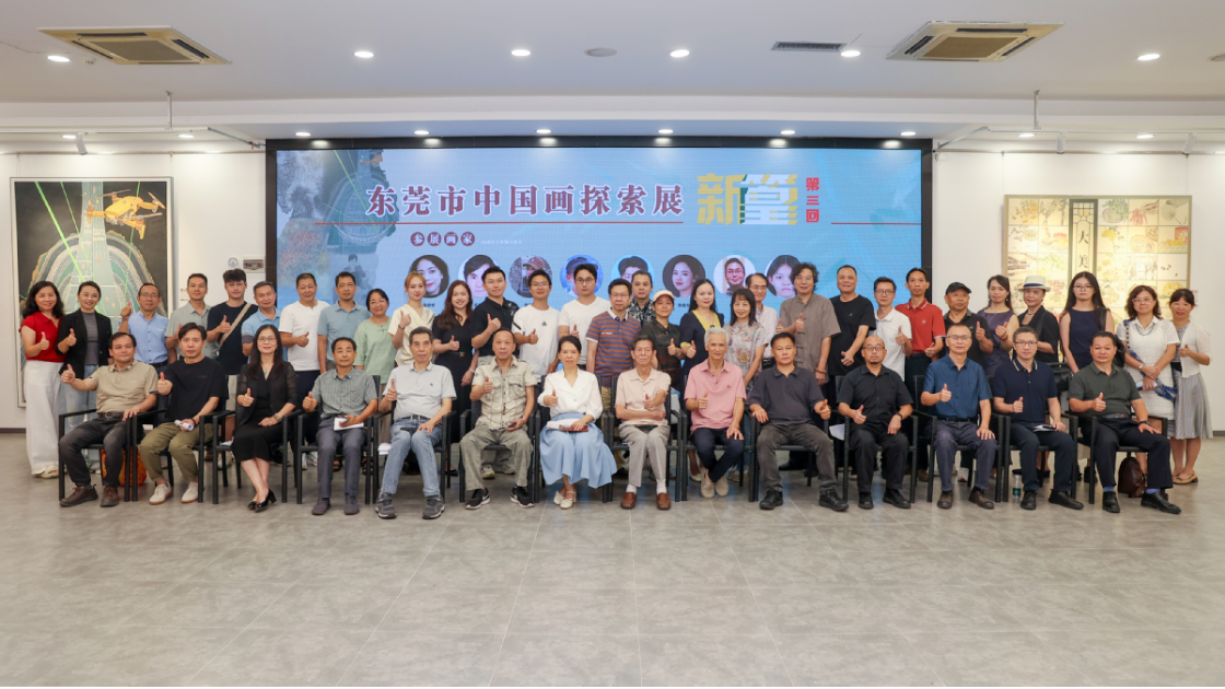 市中国画学会副会长刘婉仪穿梭于《水乡月色》《榕树下》等地域题材前,向记者展开三年规划图:"'新篁'平台已纳入'百千万工程'文化板块,明年计划带青年创作者进驻茶山南社明清古村写生。"她翻开画册指向邓喜伦的《龙舟竞渡》:"这些涌动着龙舟鼓点的笔触,比任何口号更能传递东莞的血脉。"市文联副主席林玉秀在致辞中特别提及,学会今年将联合广州美院设立"莞邑笔墨"奖学金,为入选全国美展的本土创作者提供创作基金。