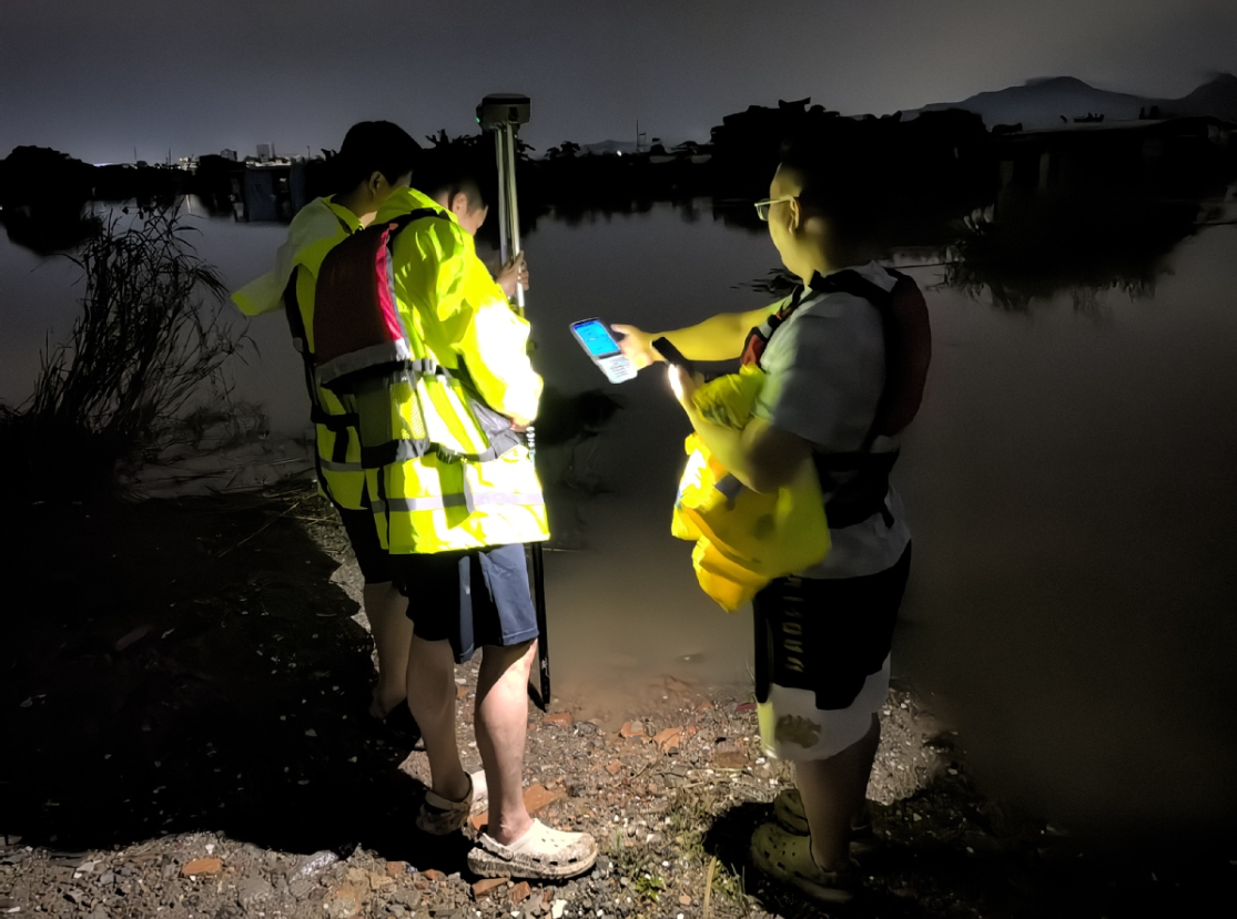水文应急监测队携走航式ADCP、无人机、无人船星夜驰援。党员张胜强腰系安全绳踏入激流,手持电波流速仪连续36小时采集数据,泥泞堤坝上设立的临时水位站彻夜闪烁红灯。队员们在暴雨中校准设备,无人机低空掠过翻滚的河面,声学多普勒流速剖面仪刺破浑浊水流,实时回传关键水文参数。熬红双眼的监测员在临时搭建的雨棚下轮番值守,一组组水位、流速数据通过卫星链路直传惠州水文情报预报中心。