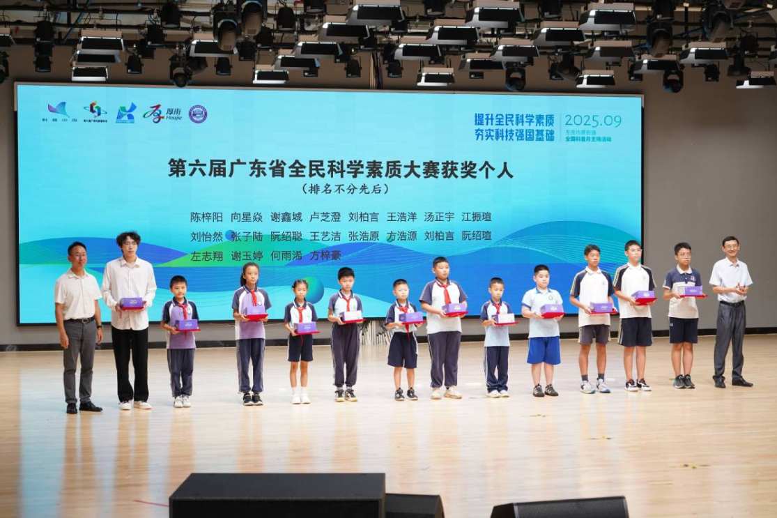 现场还为第六届广东省全民科学素质大赛中厚街镇的10个优秀组织单位及获奖学生进行了颁奖,以此表彰先进力量,激发更多人参与科普活动的积极性。科普音乐剧《黎明前的120分钟》将水循环、生态互助等科学原理融入童话寓言中,让观众在情感共鸣中领悟自然规律。厚街镇实验学校学生的合唱《光之心》则用纯净的歌声传递了对科学的热爱。