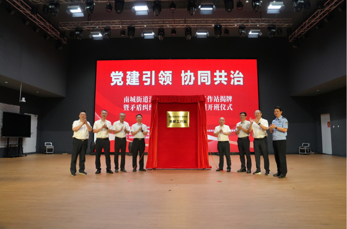 10月14日上午,南城街道涉校矛盾纠纷调解工作站在南城商务区北部学校正式揭牌成立,标志着该地区校园安全协同共治工作迈出了重要步伐。市委政法委、市中级人民法院、市教育局及南城街道相关领导出席了揭牌仪式,辖区各级各类学校负责人、家长代表等260余人共同见证了这一时刻。