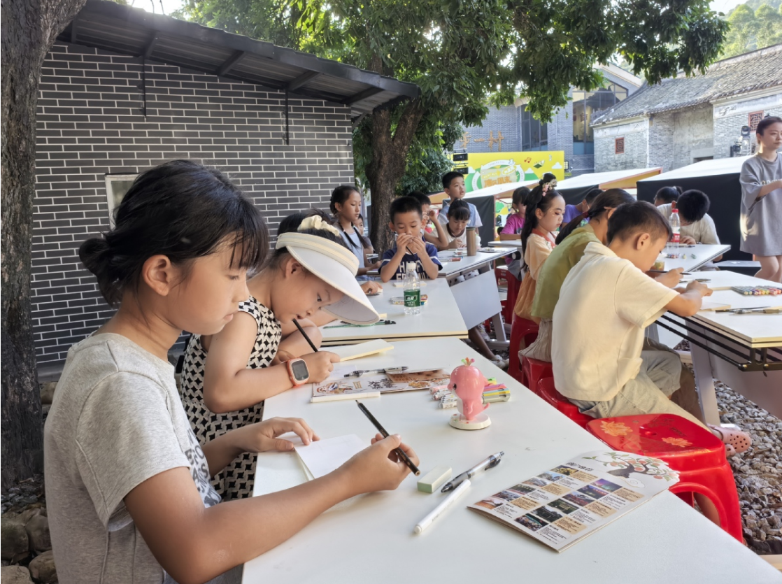 在“中国作家第一村”,作家浅草分享了他的作品《指尖上的中国》,为活动拉开了序幕。现场还设有“童心对话作家”和作品签赠环节,深圳乐其乐写作研学机构的“小记者”们积极参与其中。此外,禾沐美术馆带来了动漫文创IP研学体验和“迪爱歪”文创拼装体验,让亲子家庭在互动中增进感情。