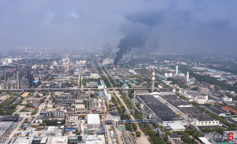 原标题:现场航拍:中石化上海石化股份公司厂区大火已得到控制,正实施保护性燃烧