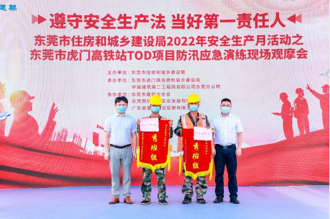 6月16日,东莞市住房和城乡建设局2022年“安全生产月”活动之防汛应急演练现场观摩会,在中建二局东莞分公司虎门高铁站TOD项目顺利举行。
