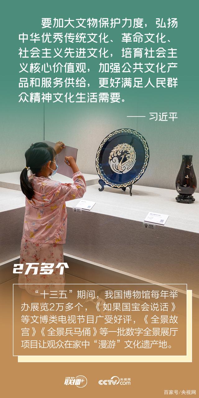 “文物和文化遗产承载着中华民族的基因和血脉,是不可再生、不可替代的中华优秀文明资源。要让更多文物和文化遗产活起来,营造传承中华文明的浓厚社会氛围。”一直以来,习近平总书记高度重视文物和文化遗产保护工作,曾在不同场合多次对文物和文化遗产保护工作作出重要指示。央视网《联播+》“数说新时代”系列特推出创意海报,以飨读者。