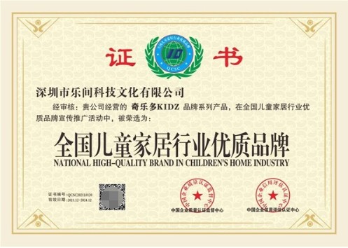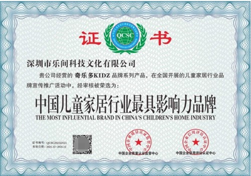 2021年12月,奇乐多KIDZ参加全国开展的儿童家居行业品牌评选活动,在众多优秀的家居品牌中奇乐多以它优质的产品质量、优良的客户口碑、卓越的服务体系杀出重围,最后被中国企业质量认证监督中心、中国企业信用评估认证中心两大机构荣选为“中国儿童家居行业最具影响力品牌”和“全国儿童家居行业优质品牌”。金杯银杯不如老百姓的口碑,这对于奇乐多人来说可谓是双喜临门。