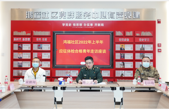 2021年鸿福社区入伍青年共计9人。2022年上半年有意向应征报名人员12人,最终经过体检及政审筛选合格入伍6人。