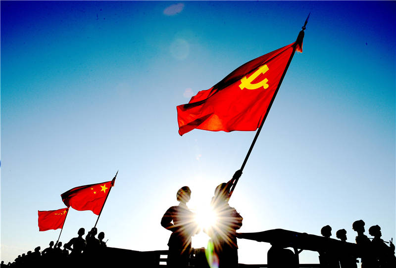 党旗领着军旗走,人民军队“在斗争中诞生、在斗争中发展、在斗争中壮大”;军旗跟着党旗走,人民军队“不畏强敌、不惧风险、敢于斗争、敢于胜利”。