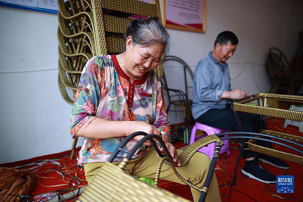 搬迁群众在贵州省毕节市七星关区柏杨林易地扶贫搬迁安置点就业扶贫车间内工作(2020年8月3日摄)。新华社记者 刘续 摄