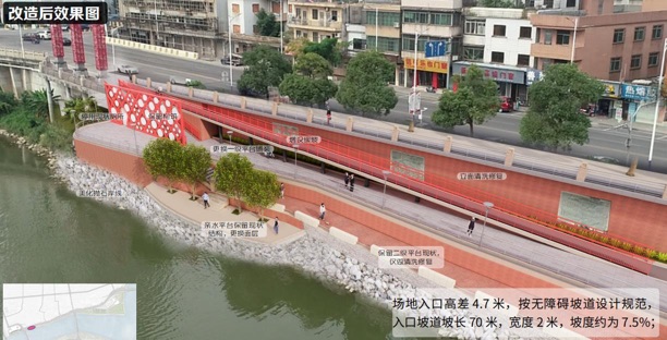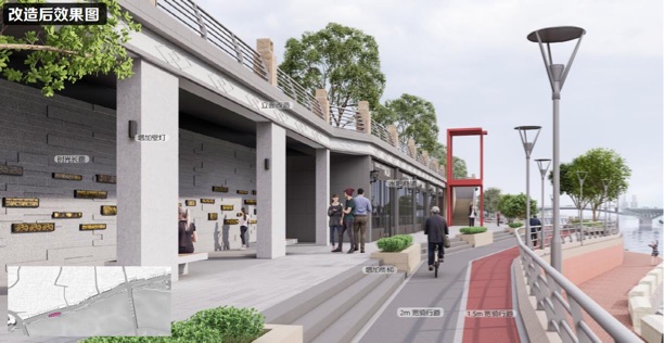 值得一提的是,此次碧道建设工程将新建3个无障碍坡道,分别位于滨江路的东段、中段和西段,使碧道与滨江路的联系更密切,方便周边群众的休闲出行。另外,打通沙洲公园与南岸公园的联系,在东岸桥底新建临江碧道与栈桥,市民可以在南岸公园通过碧道直抵沙洲公园。目前,工程已开始动工,预计年内完工。