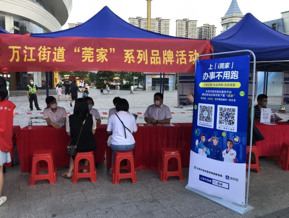 为了进一步打造“莞家”系列品牌,提升政务服务能力,推进政务服务末端执行力建设,近日,万江街道政务服务中心结合招聘会人流的特点,与万江人社分局合作开展了一场以人力资源和社会保障服务为主题的“莞家”快闪窗口宣传活动,以政务窗口前移、政务“摆摊”服务的方式把政务服务送到群众身边,积极帮助群众解决政务服务问题。
