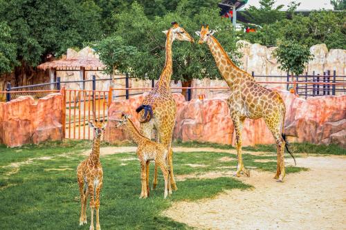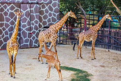 感兴趣的小伙伴们可以去东莞隐贤山庄一睹鹿宝宝们的真容,近距离接触长颈鹿宝宝后相信会有更好的灵感给它们起名字喔,更重要的是,可以参与线下互动,因为隐贤山庄将在亲亲动物园1号鹿舍举办游客与最萌小鹿的免费拍照直播活动,小伙伴来到这里都可以由园区的专业摄影拍下与长颈鹿宝宝的合照,参与朋友圈晒照集赞活动,还可以获得免费打印的合照相片喔。